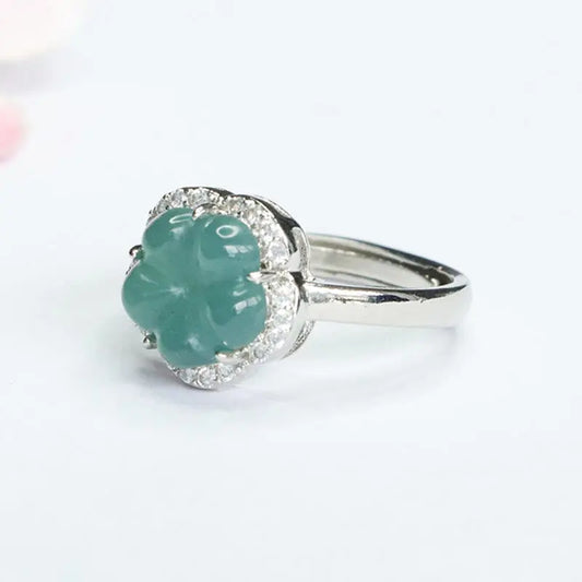 Buddha Stones Jade Alloy Flower Ring