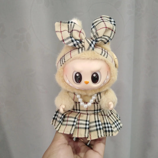 Handmade Labubu Outfit, Chic Plaid Princess Set for Labubu