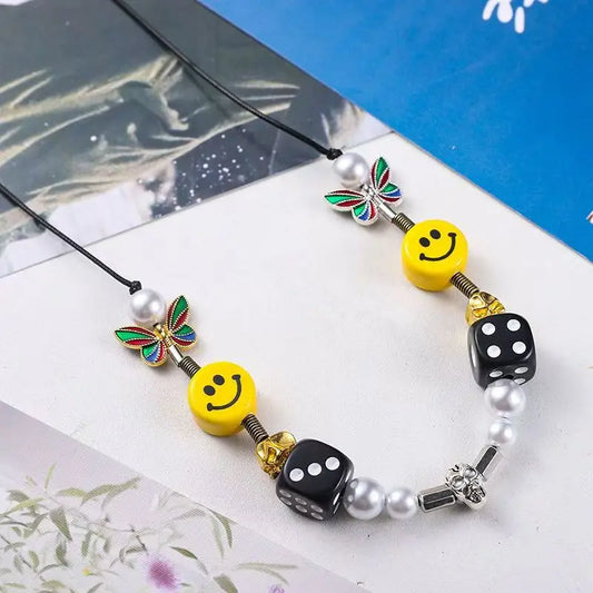 Jewelry × Vintage Pearl Smile Skull Dice Necklace