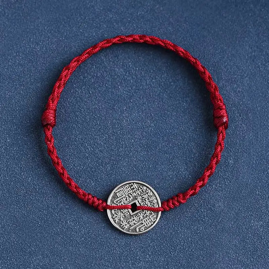 Buddha Stones 925 Sterling Silver Coin Protection Braided Bracelet Anklet