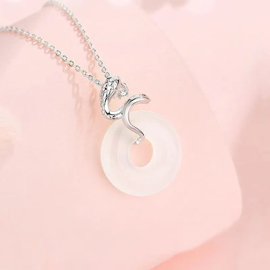 Buddha Stones 925 Sterling Silver Chalcedony Peace Buckle Year Of The Snake Harmony Necklace Pendant