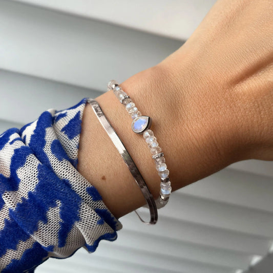 Moonstone & Herringbone Bracelet Stack - Intuitive Spirit