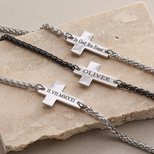 Regular price From $39.00Regular priceUnit price / per$58.62Sale price From $39.00cross braceletengraved braceletfashion accessorymen's jewelrypersonalized giftSave [%] -