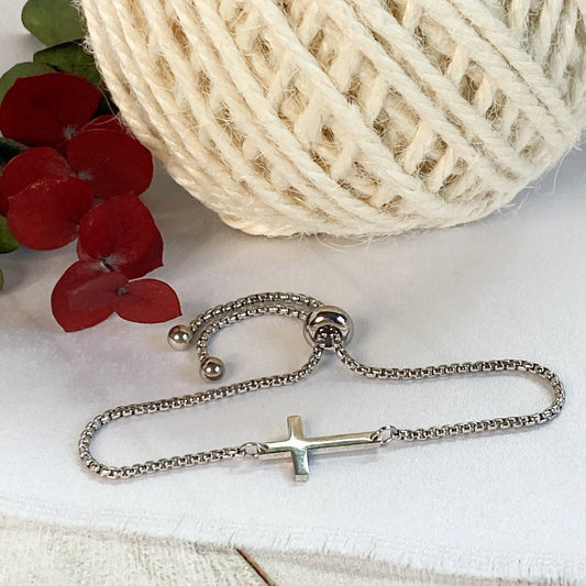 Cross Bracelet - Dainty Paperclip Chain with Cross
