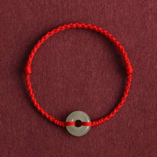 Buddha Stones Natural Hetian Jade Peace Buckle Red String Protection Luck Bracelet