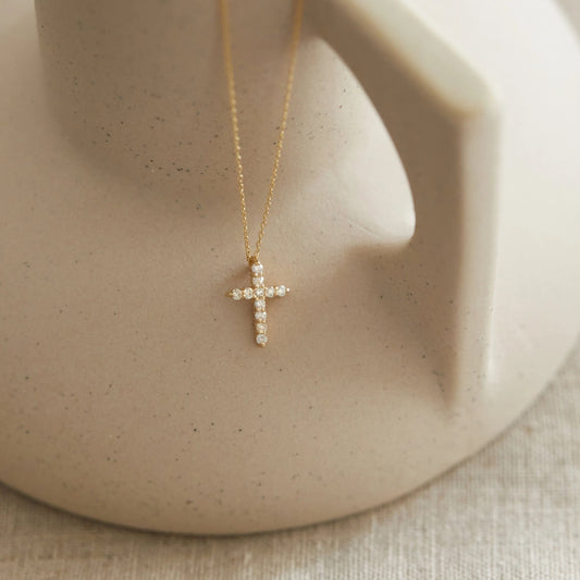 Collier croix en or massif 14 carats et diamants pour femme