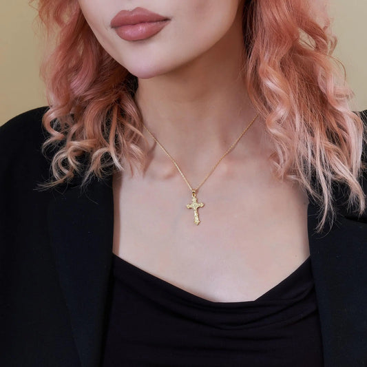 Collier croix en or 14 carats, bijou religieux