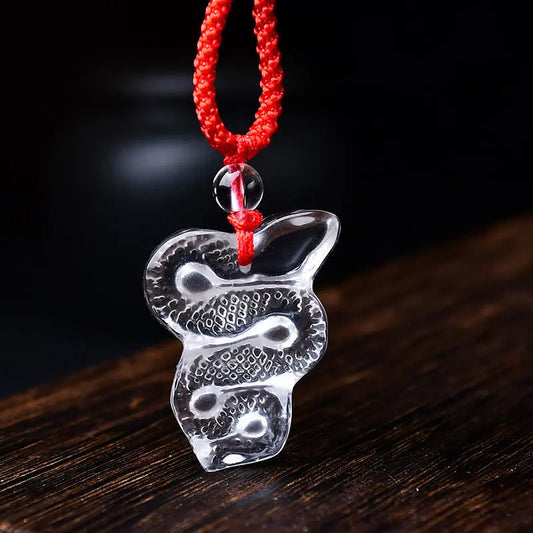 Collier pendentif de guérison Liuli Année du Serpent en cristal blanc Buddha Stones