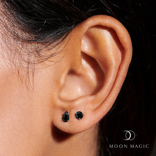 Clous d'oreilles ronds et en forme de larme en obsidienne noire