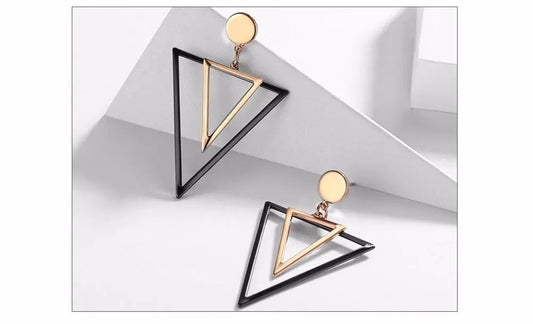 Boucles d'oreilles pendantes triangulaires Viennois en or rose et couleur pistolet