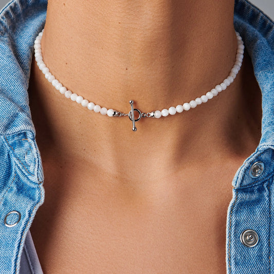Collier de perles en pierre de lune blanche avec fermoir en T - Augmentez vos vibrations