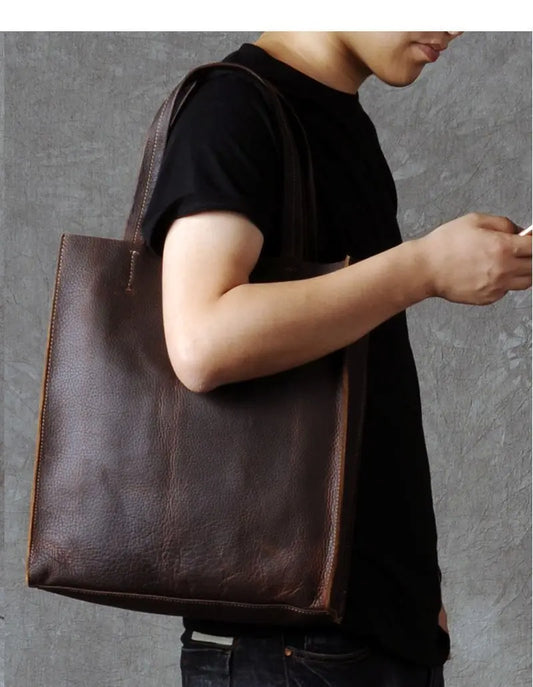 Sac à main vintage en cuir Crazy Horse | Sac fourre-tout en cuir véritable